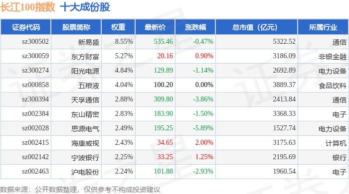 长江100(399278)指数十大成份股详情如下: