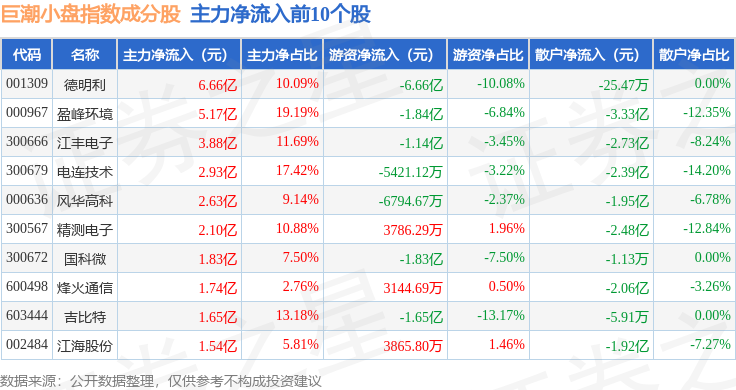 资金流向方面,巨潮小盘(399316)指数成份股当日主力资金净流出合计152.96亿元,游资资金净流入合计30.43亿元,散户资金净流入合计121.95亿元。成份股资金流向详情见下表: