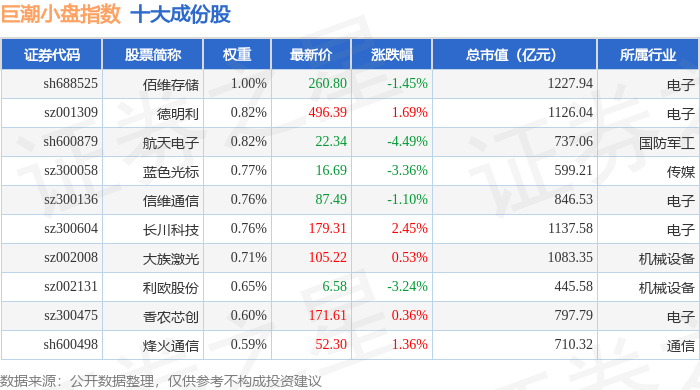 巨潮小盘(399316)指数十大成份股详情如下: