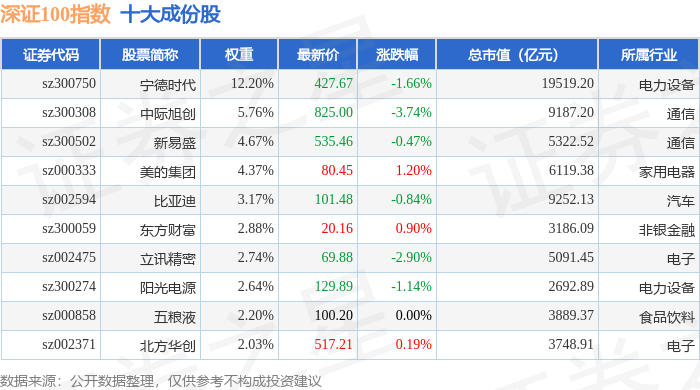 证券之星消息,4月28日,深证100(399330)指数报收于6326.16点,跌0.97%,成交2800.25亿元,换手率1.22%。当日该指数成份股中,上涨的有43家,三环集团以7.89%的涨幅领涨,下跌的有55家,华大九天以10.96%的跌幅领跌。