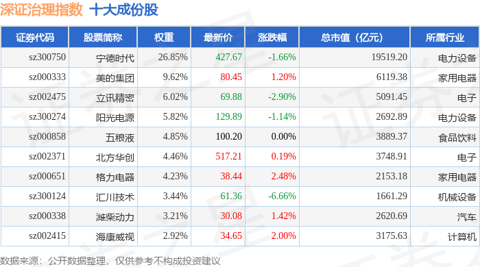 深证治理(399328)指数十大成份股详情如下: