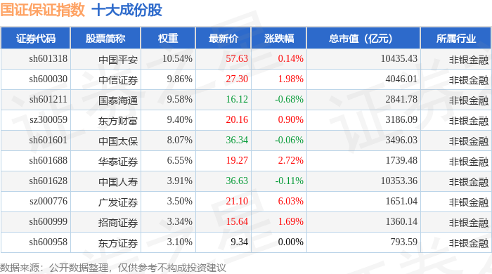国证保证(399420)指数十大成份股详情如下: