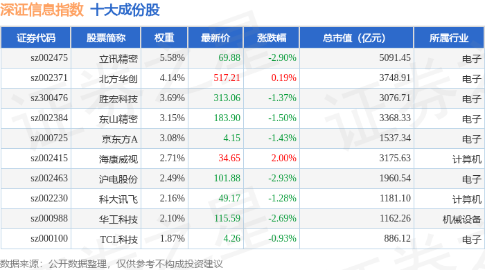深证信息(399620)指数十大成份股详情如下:
