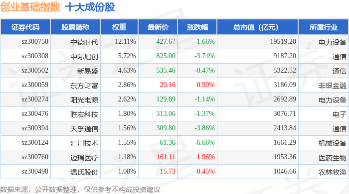 创业基础(399640)指数十大成份股详情如下: