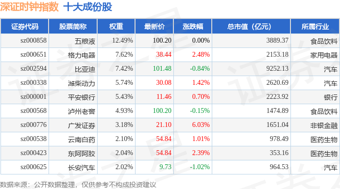 深证时钟(399644)指数十大成份股详情如下: