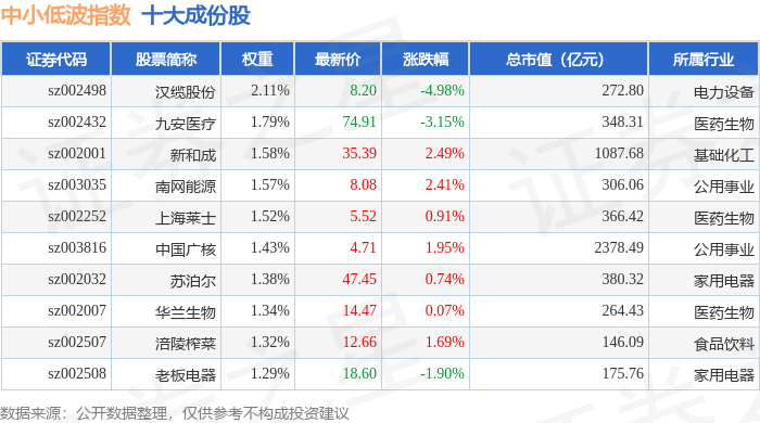 中小低波(399663)指数十大成份股详情如下: