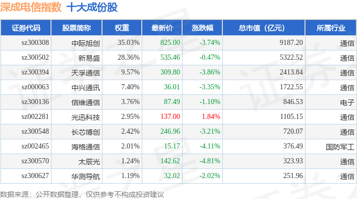 深成电信(399688)指数十大成份股详情如下:
