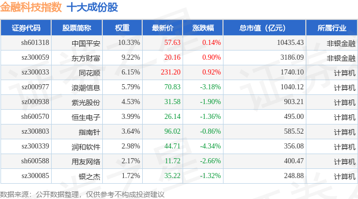 资金流向方面,金融科技(399699)指数成份股当日主力资金净流出合计18.33亿元,游资资金净流入合计4.26亿元,散户资金净流入合计13.88亿元。成份股资金流向详情见下表: