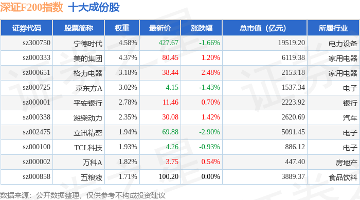 深证F200(399703)指数十大成份股详情如下: