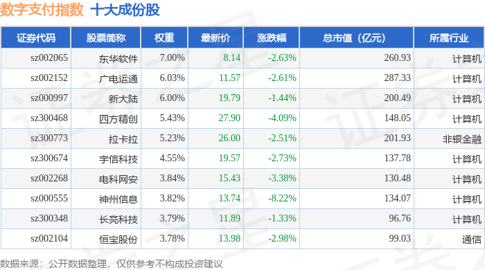 数字支付(980113)指数十大成份股详情如下:
