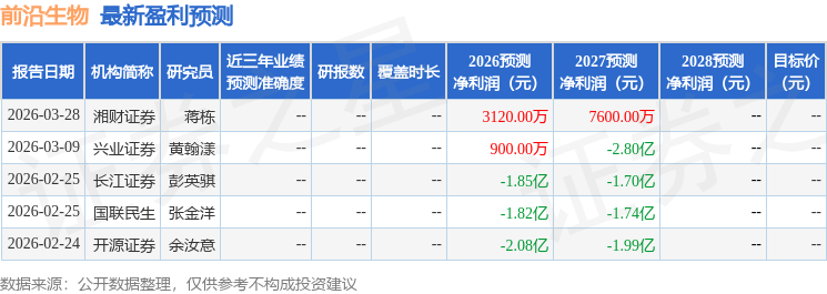 开源证券股份有限公司余汝意,巢舒然近期对前沿生物进行研究并发布了研究报告《公司信息更新报告:2026Q1达成BD赋能增长,双靶点siRNA潜力可期》,给予前沿生物买入评级。