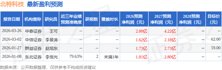 证券之星数据中心根据近三年发布的研报数据计算,东北证券李恒光研究员团队对该股研究较为深入,近三年预测准确度均值为79.63%,其预测2026年度归属净利润为盈利1.81亿,根据现价换算的预测PE为85.7。