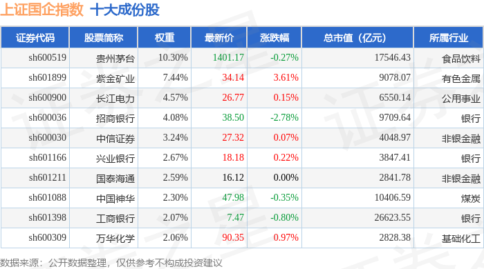 上证国企(000056)指数十大成份股详情如下: