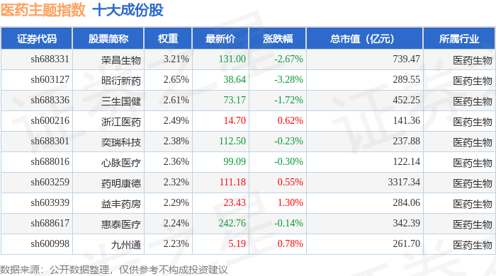 医药主题(000121)指数十大成份股详情如下: