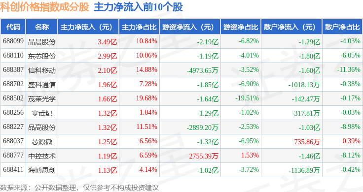 资金流向方面,科创价格(000681)指数成份股当日主力资金净流出合计64.31亿元,游资资金净流入合计29.24亿元,散户资金净流入合计35.08亿元。成份股资金流向详情见下表: