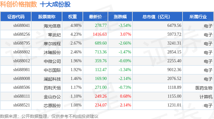 证券之星消息,4月29日,科创价格(000681)指数报收于1820.19点,涨0.54%,成交3159.76亿元,换手率2.46%。当日该指数成份股中,上涨的有373家,日联科技以20.0%的涨幅领涨,下跌的有204家,卓然股份以20.0%的跌幅领跌。