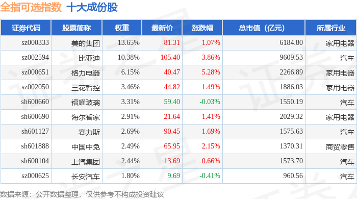 全指可选(000989)指数十大成份股详情如下: