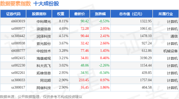 证券之星消息,4月29日,数据要素(399418)指数报收于4199.37点,涨0.71%,成交616.56亿元,换手率1.15%。当日该指数成份股中,上涨的有36家,中文在线以3.71%的涨幅领涨,下跌的有13家,同方股份以5.44%的跌幅领跌。