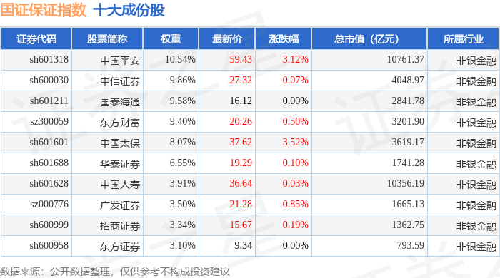 国证保证(399420)指数十大成份股详情如下: