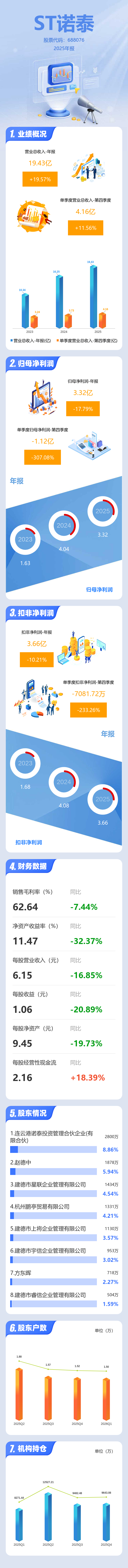 证券之星消息,ST诺泰2025年年报显示,当年度公司主营收入19.43亿元,同比上升19.57%;归母净利润3.32亿元,同比下降17.8%;扣非净利润3.66亿元,同比下降10.21%;其中2025年第四季度,公司单季度主营收入4.16亿元,同比上升11.56%;单季度归母净利润-1.12亿元,同比下降307.09%;单季度扣非净利润-7081.72万元,同比下降233.27%;负债率55.47%,投资收益202.56万元,财务费用5781.34万元,毛利率62.64%。