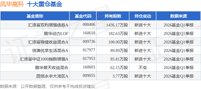 持有风华高科最多的基金为汇添富双利增强债券A,目前规模为39.72亿元,最新净值1.2897(4月29日),较上一交易日上涨0.55%,近一年上涨20.23%。该基金现任基金经理为邵佳民 丁云波。