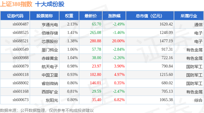 上证380(000009)指数十大成份股详情如下: