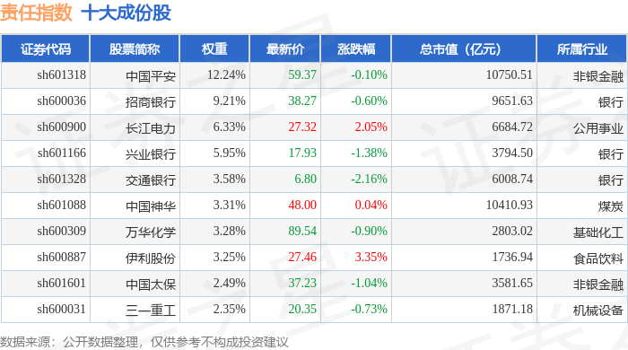 责任指数(000048)十大成份股详情如下: