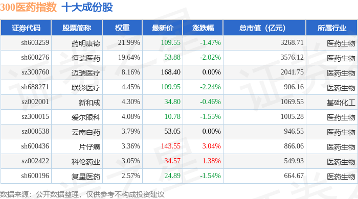 资金流向方面,300医药(000913)指数成份股当日主力资金净流出合计4.99亿元,游资资金净流入合计1009.89万元,散户资金净流入合计4.89亿元。成份股资金流向详情见下表:
