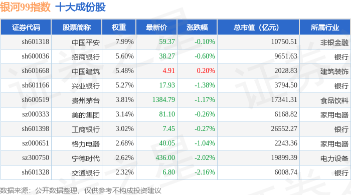 银河99(000959)指数十大成份股详情如下: