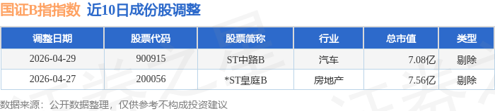 近10日内国证B指(399318)指数成份股做了调整,剔除了2只股票。