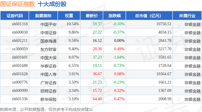 证券之星消息,4月30日,国证保证(399420)指数报收于1382.6点,涨0.13%,成交450.21亿元,换手率1.05%。当日该指数成份股中,上涨的有14家,长江证券以10.06%的涨幅领涨,下跌的有12家,天风证券以3.5%的跌幅领跌。