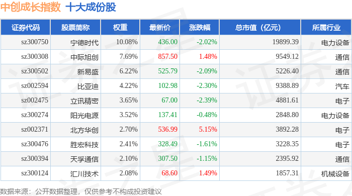 证券之星消息,4月30日,中创成长(399626)指数报收于2436.76点,涨0.02%,成交3394.91亿元,换手率3.1%。当日该指数成份股中,上涨的有73家,英杰电气以12.88%的涨幅领涨,下跌的有91家,索菲亚以6.47%的跌幅领跌。
