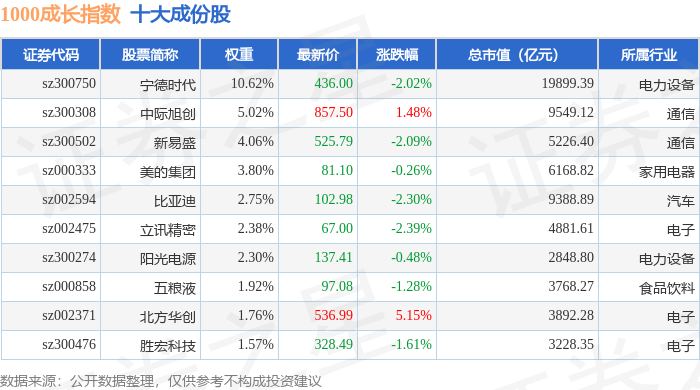 证券之星消息,4月30日,1000成长(399630)指数报收于2040.04点,跌0.2%,成交4942.13亿元,换手率2.92%。当日该指数成份股中,上涨的有139家,英杰电气以12.88%的涨幅领涨,下跌的有192家,索菲亚以6.47%的跌幅领跌。