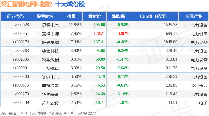 深证智能电网R(470054)指数十大成份股详情如下: