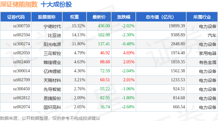深证储能(970036)指数十大成份股详情如下:
