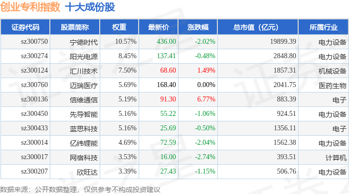 创业专利(970068)指数十大成份股详情如下: