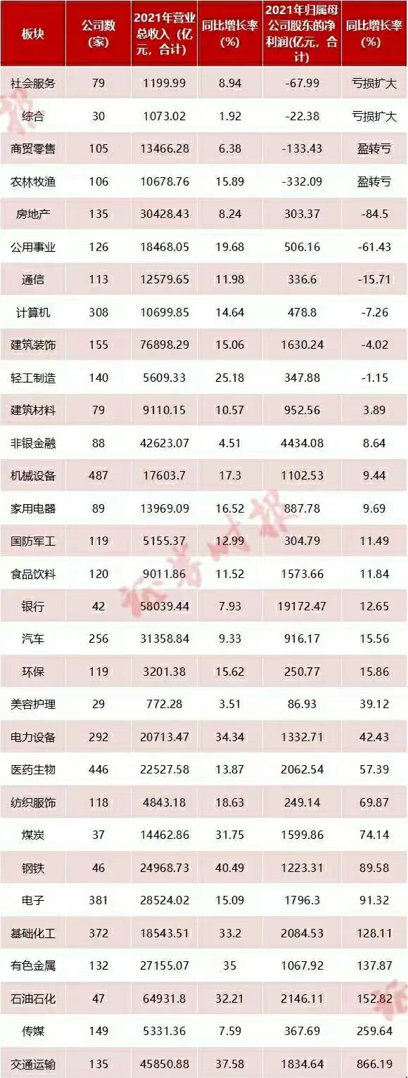 若从行业来看,“分化”是上市公司2021年经营表现重要的特征。