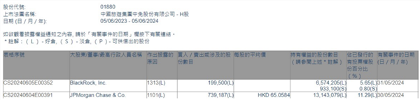 5月30日,摩根大通增持中国中免H股73.9187万股,平均每股作价65.0584港元,增持总金额约为4809.03万港元。增持后,最新持股数目约为1314.3万股,最新持股比例上升至11.29%。
