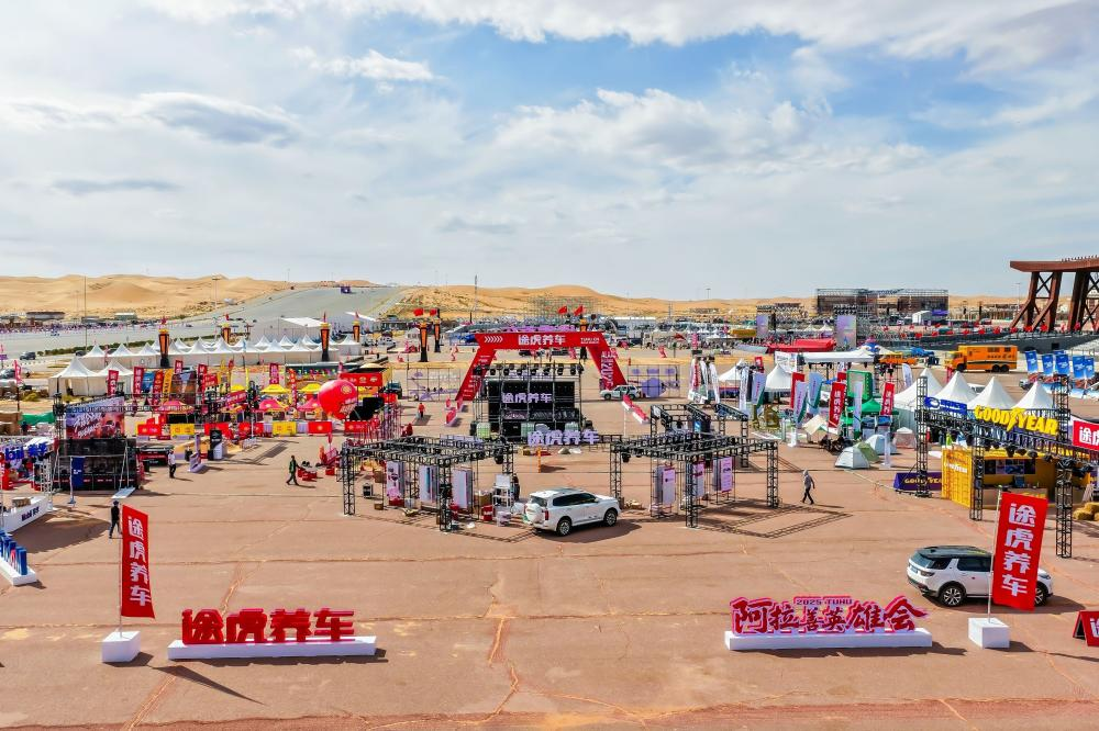 途虎养车此次在阿拉善梦想沙漠公园核心区搭建了占地5000平方米的“越野营地”,集中展示了20家国际大牌的前沿技术与产品。