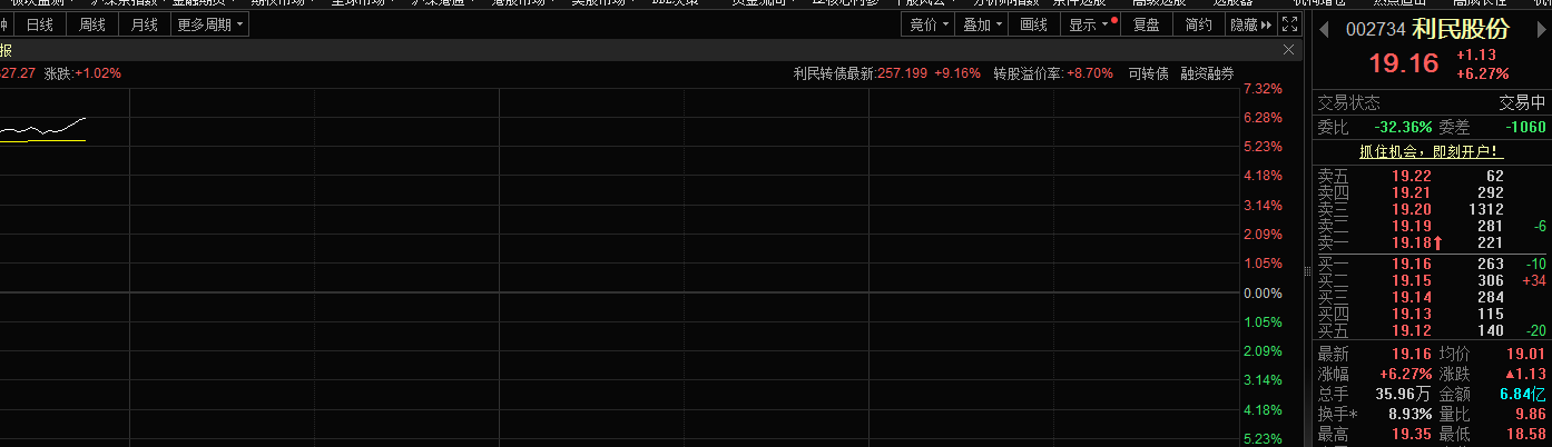 10月10日,利民股份(002734)股价实现逆势大涨。截至发稿,股价涨幅超6%。
