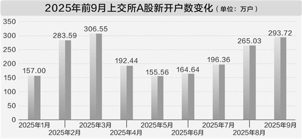 值得注意的是,今年9月上交所293.72万户的A股新开户数为年内月度第二高。在此之前的3月份,上交所A股新开户数超过300万户,为306.55万户。