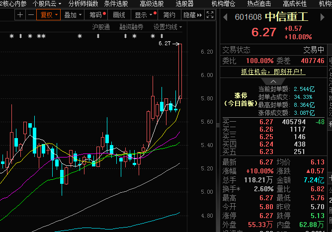 10月20日,机器人概念板块集体大涨,其中,中信重工(601608)股价实现涨停。