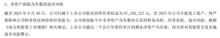 截至今年三季度末,众泰汽车的净资产为1258.28万元,同比下滑98.61%。众泰汽车在2025年半年报中表示,若2025年不能复工复产,将严重影响公司的财务状况和持续经营能力,公司将面临今年末净资产为负数而引发的财务风险、经营危机、退市风险。这也意味着,2022年5月“摘帽”仅约三年半,众泰汽车又面临退市危机。