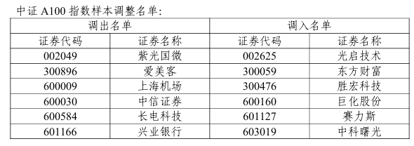 中证A100指数更换6只样本,东方财富、胜宏科技、中科曙光、赛力斯等调入指数。