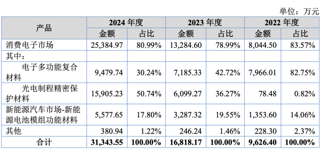 进一步分析可见,斯瑞达业绩增长背后,电子多功能复合材料、光电制程精密保护材料和新能源电池模组功能材料三大产品板块均实现增长。其中,光电制程精密保护材料业务成为推动公司业绩快速增长的关键动力。