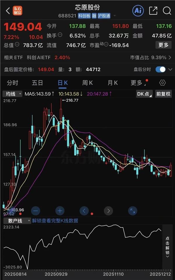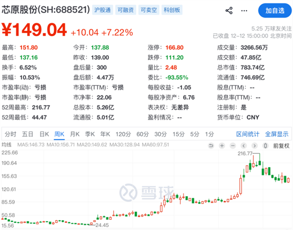 值得一提的是,芯原股份系A股芯片板块的大牛股,截至12月12日收盘,芯原股份股价大涨超7%,报收149.04元,年内累计涨幅高达184.26%,总市值升至783.74亿元。