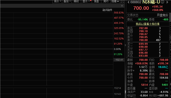 12月17日,沐曦股份(688802)竞价高开568%,股价报700元/股。其发行价为104.66元/股,据此计算中一签或可赚近30万元。