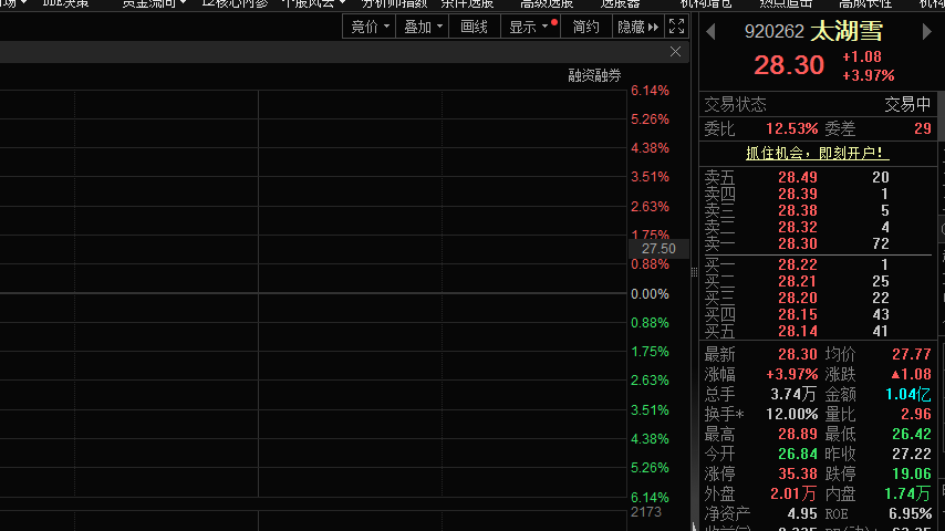 12月19日,太湖雪(920262)股价上涨。截至发稿,股价涨近4%,近一周股价涨幅超18%。