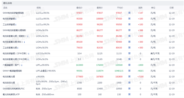 锂化合物现货价格