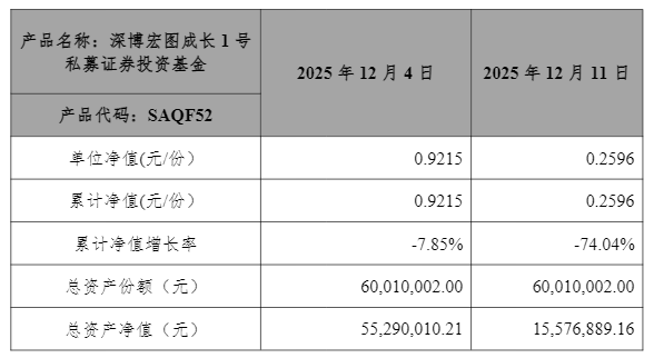 然而,12月12日,圣元环保通过邮箱收到了基金管理人发送的截止至2025年12月11日(周四)的基金净值表,基金净值对比上一期(2025年12月04日)出现了急剧下降。令人匪夷所思的是,12月4日,基金单位净值尚为0.9215元/份(累计净值增长率-7.85%),到了12月11日,净值却骤降至0.2596元/份,累计净值增长率来到了-74.04%。